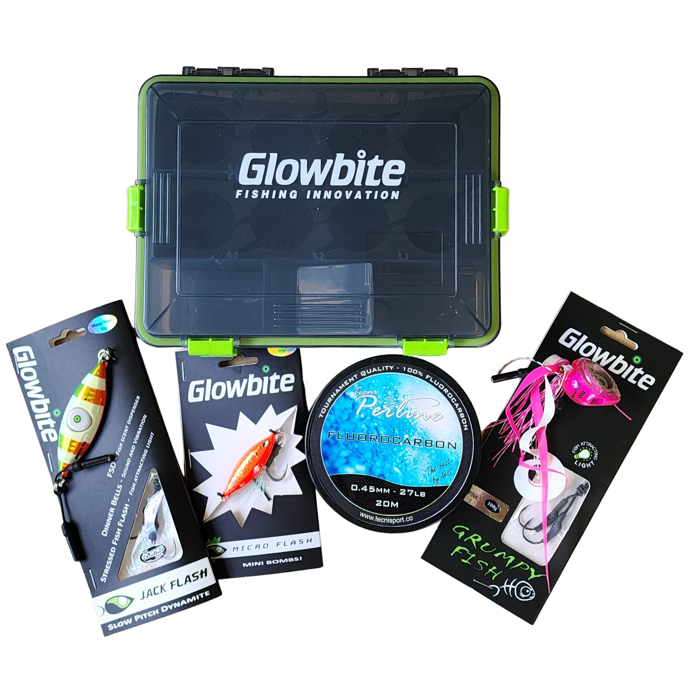 - Glowbite Tackle Box with purpose built slots to fit Glowbite lures