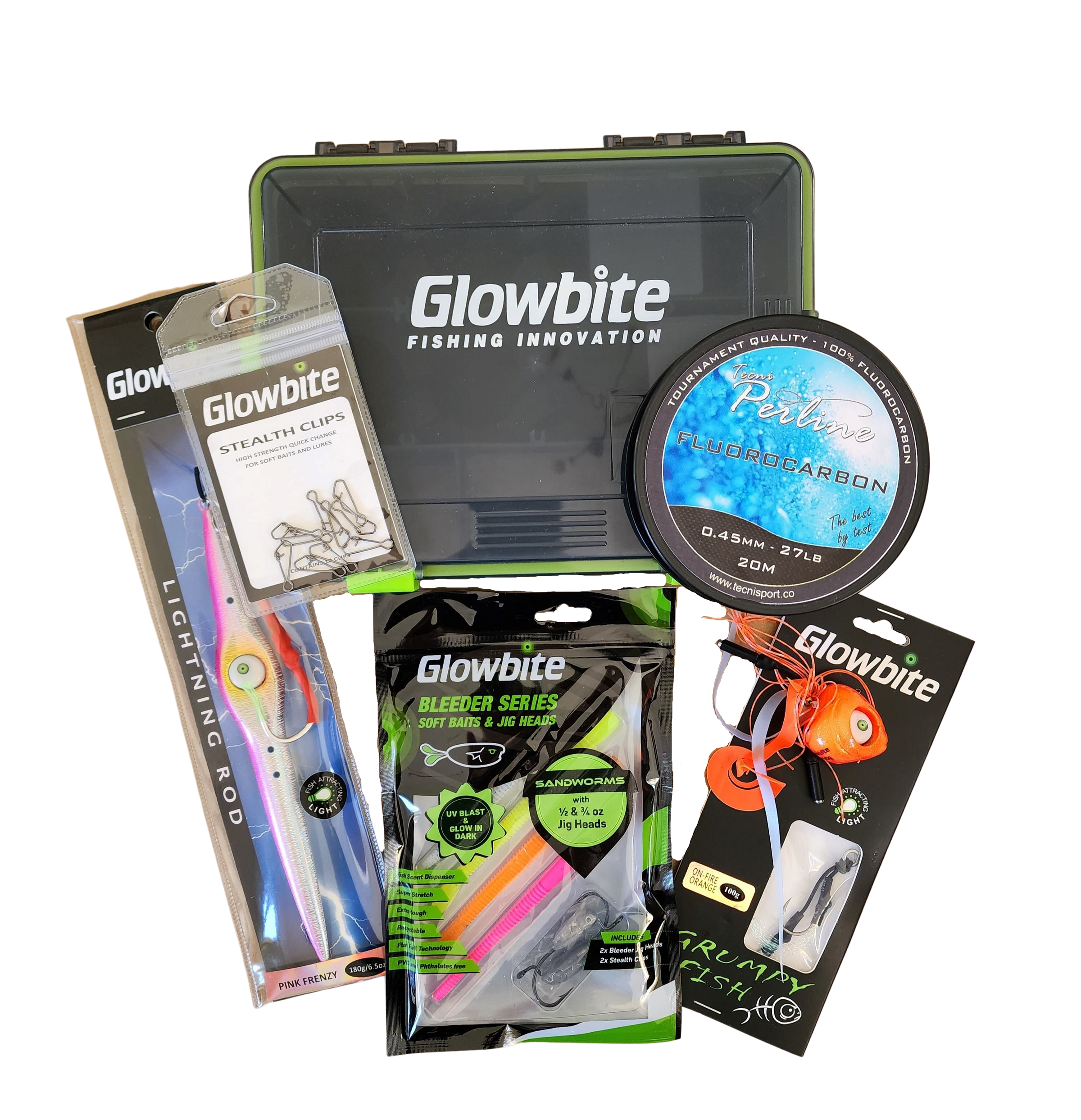 - Glowbite Tackle Box with purpose built slots to fit Glowbite lures